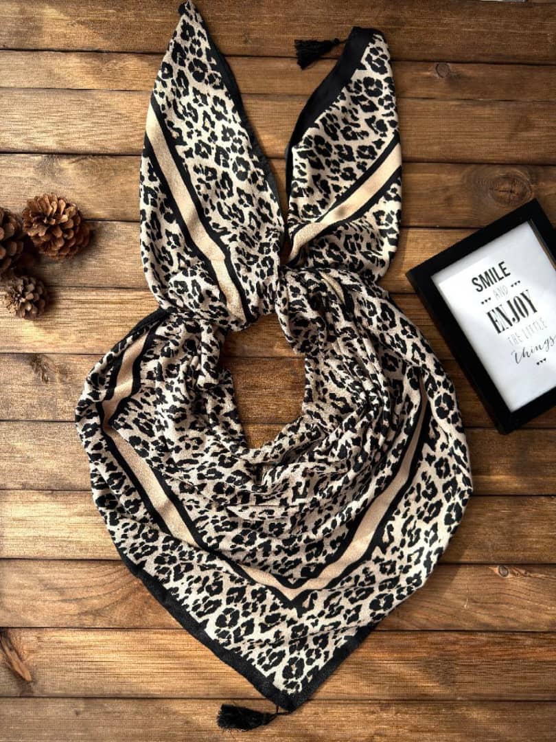 ویژگی های کلیدی روسری زنانه نخی پاییزه پلنگی قواره ۱۴۰